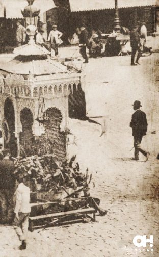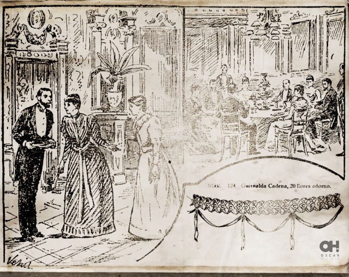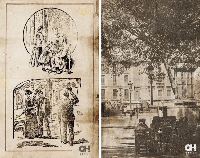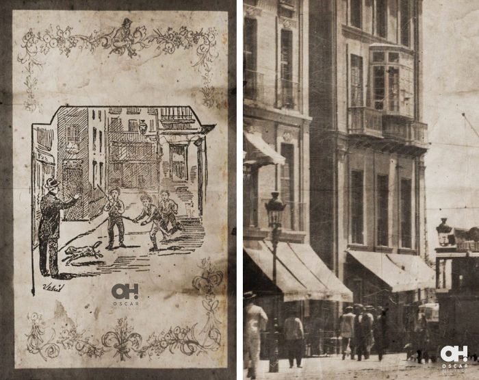 Tras la cristalera se veían los carruajes que pasaban frente a la casa y se escuchaba el rebotar de los cascos de los caballos contra los adoquines. El farol de aceite que había frente al palacete estaba siendo encendido por un sereno que podría rondar los 60 años, seguramente había mentido con su edad para poder seguir trabajando en el Cuerpo de Serenos. Una familia corría cruzando la calle antes de que pasara un tranvía. Los colores violáceos del anochecer se reflejaban sobre los muros de otro edificio frente a la casa. Las persianas verdes estaban desteñidas y una mujer sacudía una alfombra desde uno de los balcones, hecho que hacía que desde la acera, dos señoritos con levita y sombrero levantaran la mirada y la increparan. Un guardia que hacía la ronda se paraba junto a ellos e intentaba mediar. El salón de té que había en el bajo estaba decorando las dos mesas que tenía en su entrada con manteles rojos y colocaba unas guirnaldas de papel colgadas del toldo roído que tenía. Una pareja, ya mayor, montados en un carro tirado por un burro llevaban dos pavos negros grandes atados. Vendrían de la Plaza de la Alhóndiga de comprar esas viandas para la cena, pensé. Seguramente se habrían gastado un dineral, ¡pero era el día para ello!